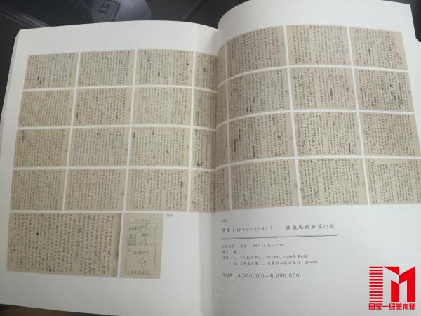 南京经典的拍卖图录上展示了茅盾手稿。 罗昕 图
