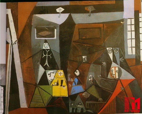对巴洛克时期的西班牙画家委拉斯凯兹作于1656年的大师级作品《宫中侍女》,毕加索一共作画58幅重新诠释。其中一部分仅聚焦于前景中的那个被认为是皇后玛格丽特·特蕾莎长女的孩子。